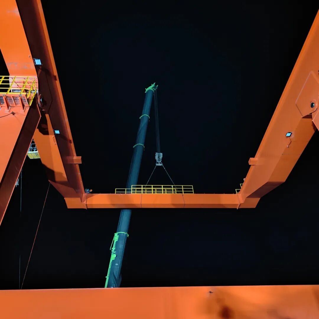 2025年12月11日23時59分,寶雞集裝箱吊安裝項目主梁吊裝作業順利完成,標志著項目建設取得階段性突破,為后續施工按下“加速鍵”。